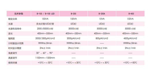 不同型號黃疸治療儀參數(shù)對比
